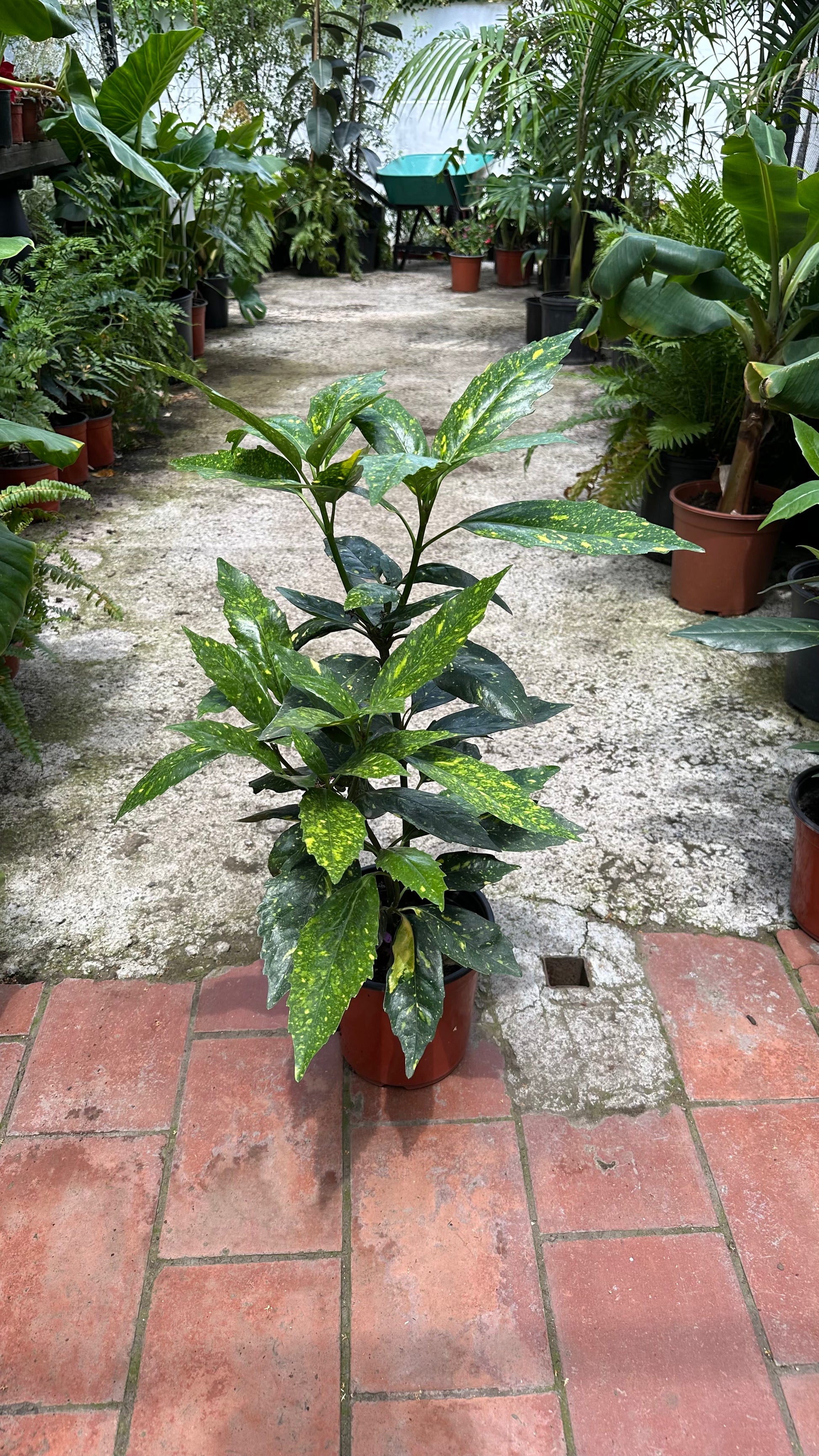 La Aucuba Japónica es un arbusto ornamental muy apreciado por su follaje único: grandes hojas verdes brillantes salpicadas de manchas doradas que parecen pintadas a mano. Su porte elegante y siempreverde la convierte en una opción ideal para dar vida y color incluso en espacios con poca luz.
