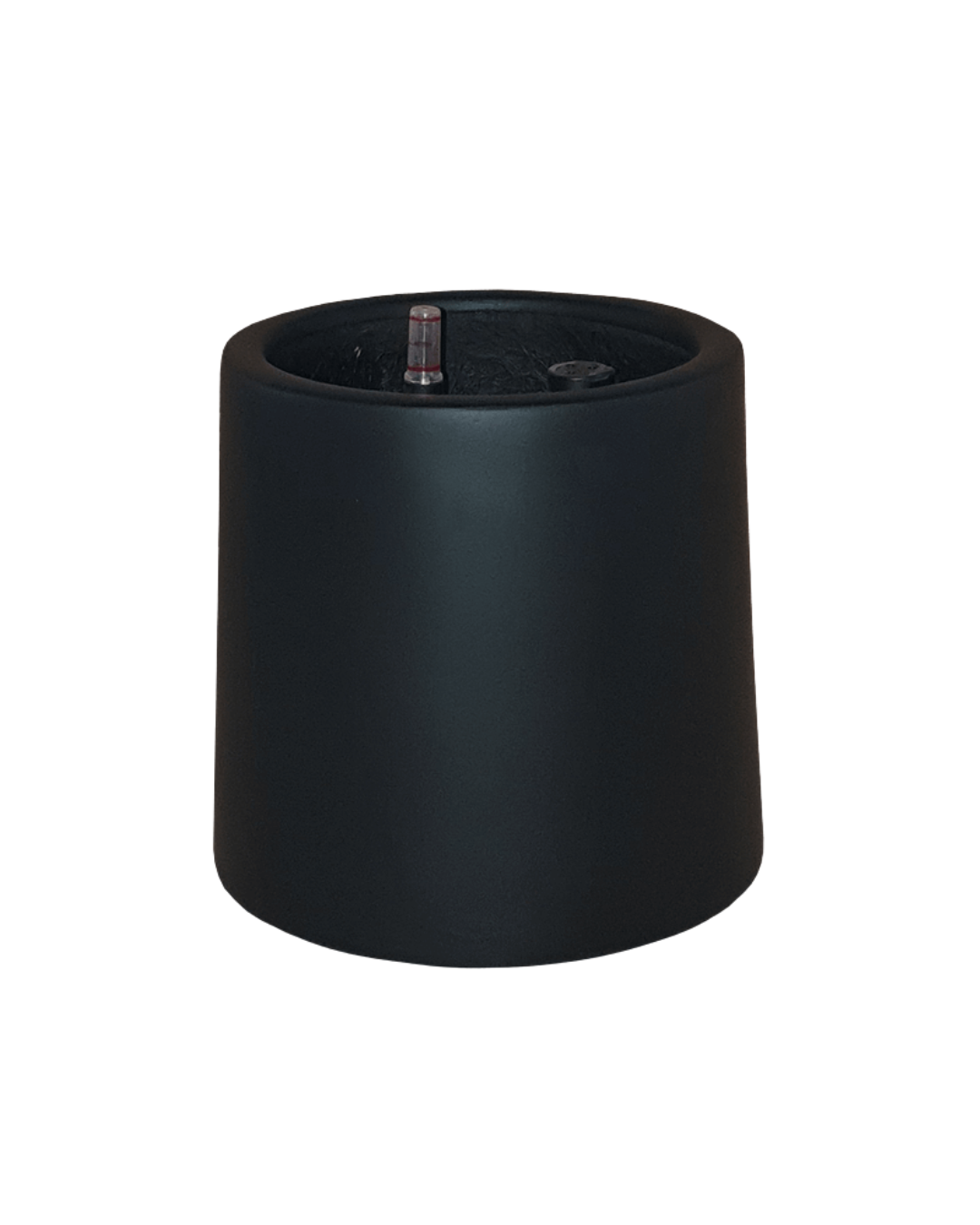 Su acabado en fibra de vidrio lo hace ultra resistente y su silueta cilíndrica de líneas limpias lo convierten en un complemento ideal para destacar la belleza de cualquier planta, integrándose con naturalidad en espacios modernos y elegantes.