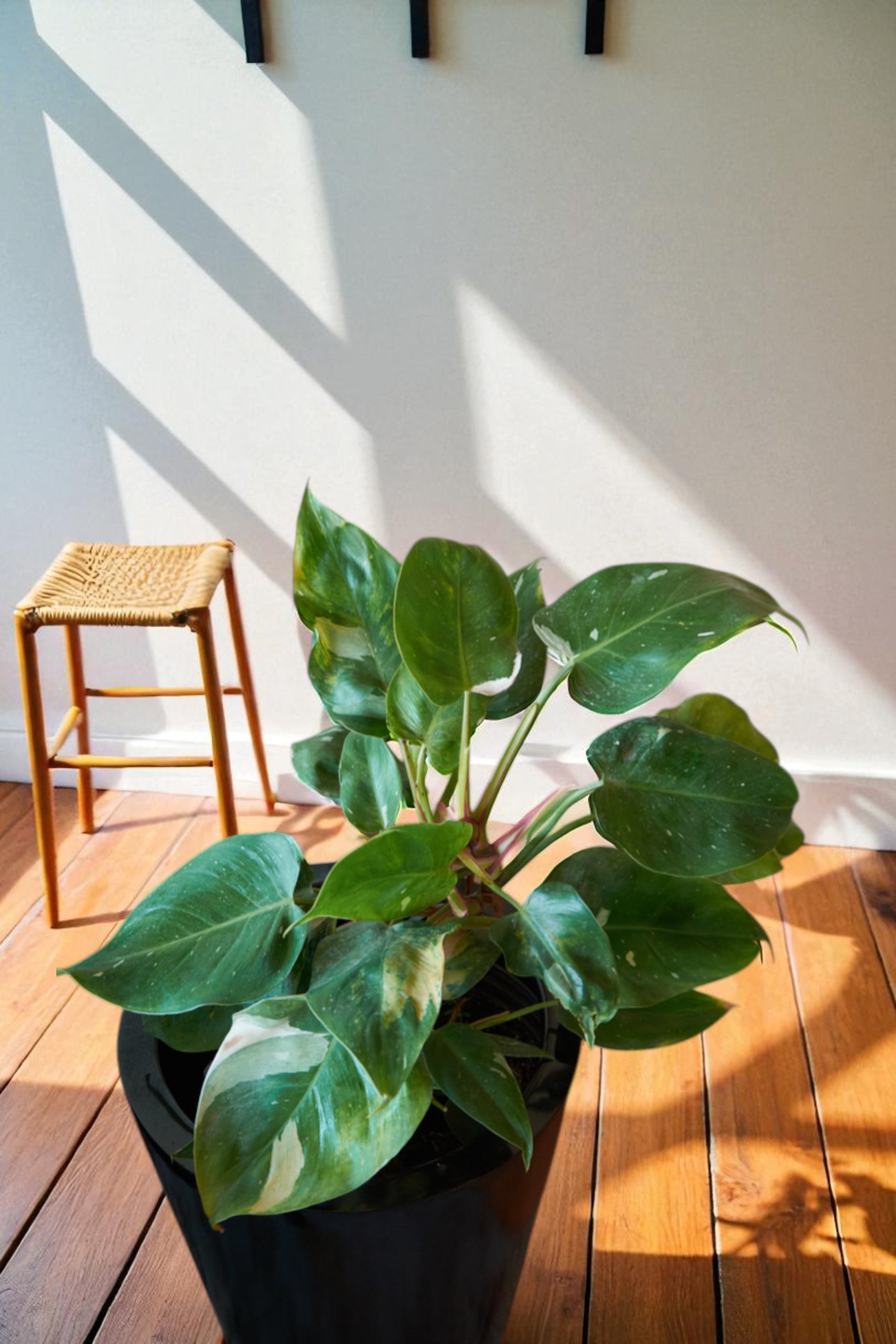 Este filodendro ama la luz ambiental abundante, pero siempre filtrada, sin sol directo. Ubícalo cerca de una ventana o en espacios bien iluminados. Riégalo cuando la capa superficial del sustrato esté seca y asegúrate de que el macetero drene bien para evitar excesos de humedad. Evita moverlo constantemente: aprecia la estabilidad y responderá con hojas nuevas y coloridas.