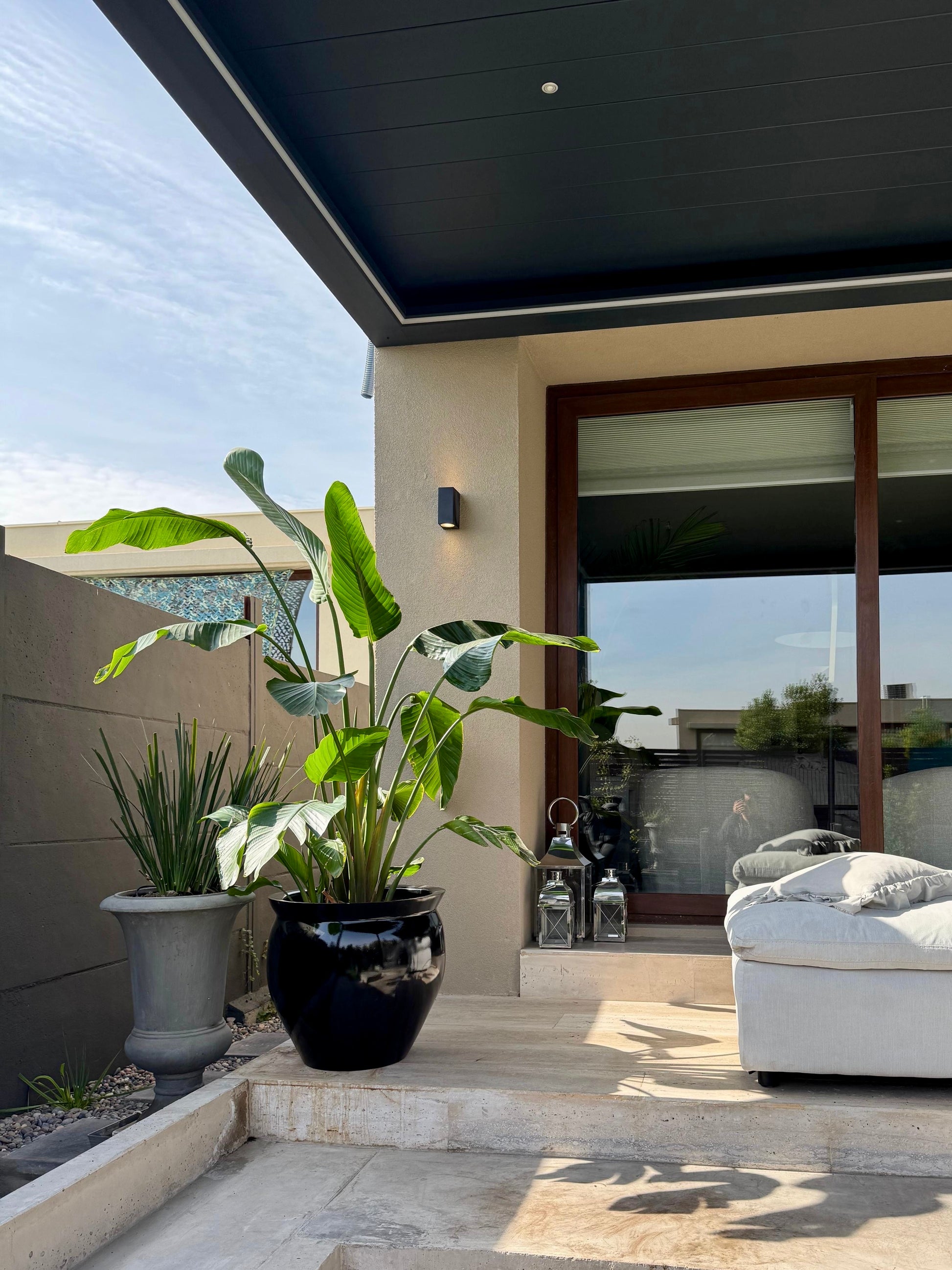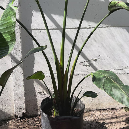 La Strelitzia Nicolai ama la luz natural y crece mejor cuando la recibe de forma abundante. Puede vivir en interiores bien iluminados o exteriores resguardado. Dale un macetero grande y buen drenaje.