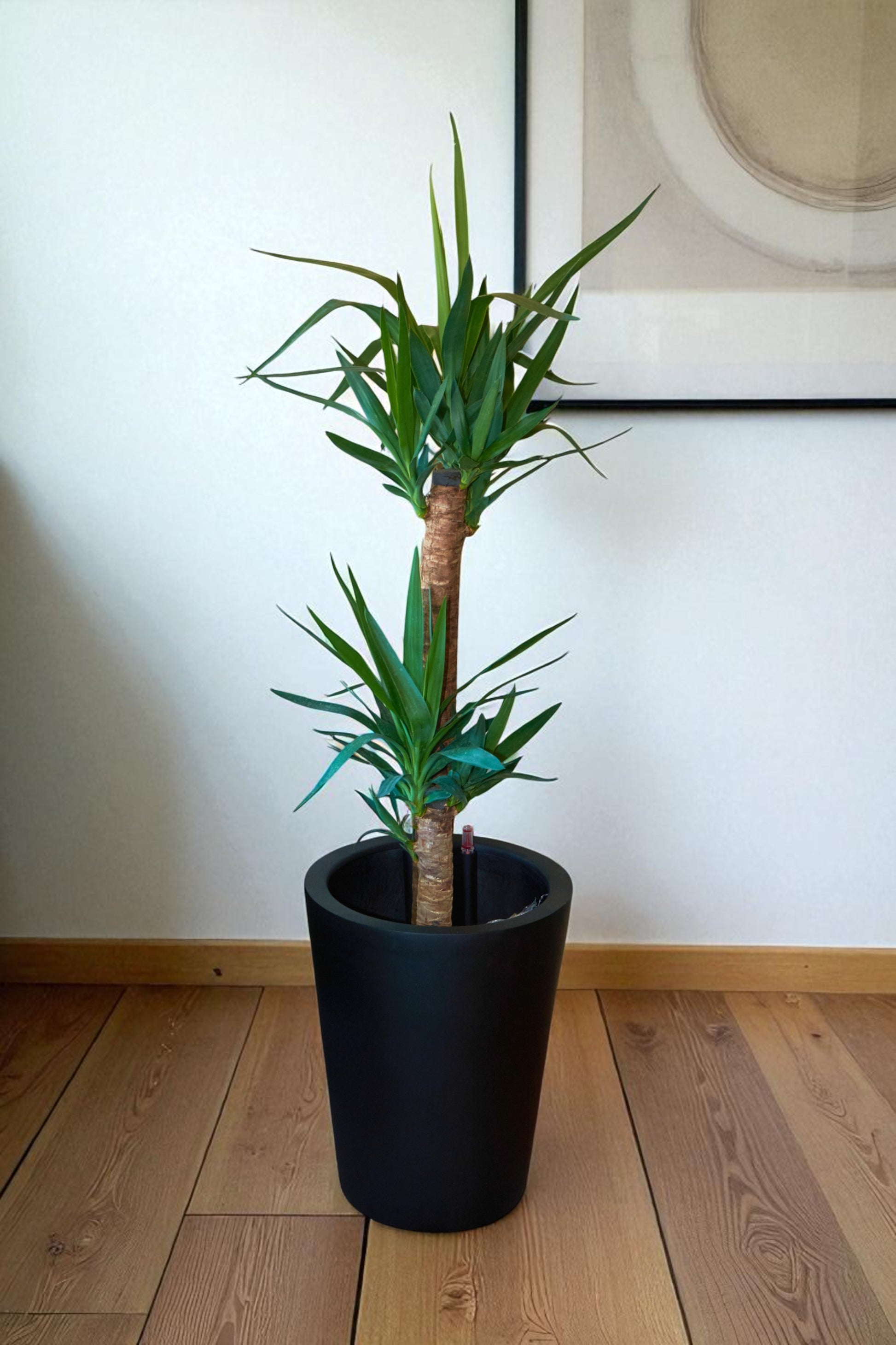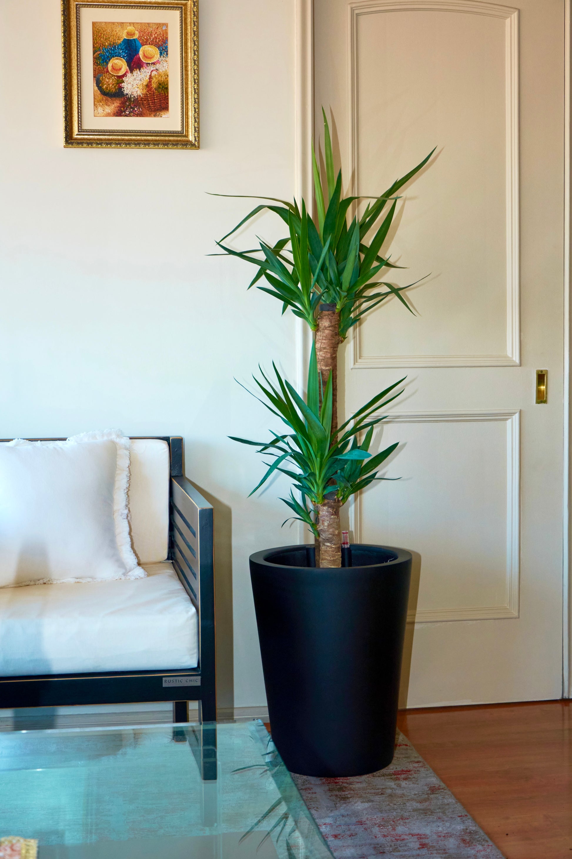 La Yuca Duo es una composición natural que combina dos tallos de distintas alturas en una sola maceta, generando un efecto visual imponente y escultórico. Su follaje afilado y bicolor entrega carácter, verticalidad y contraste, convirtiéndola en un ícono de espacios amplios y modernos. Funciona como un tótem vegetal que estructura el ambiente con personalidad y calma.